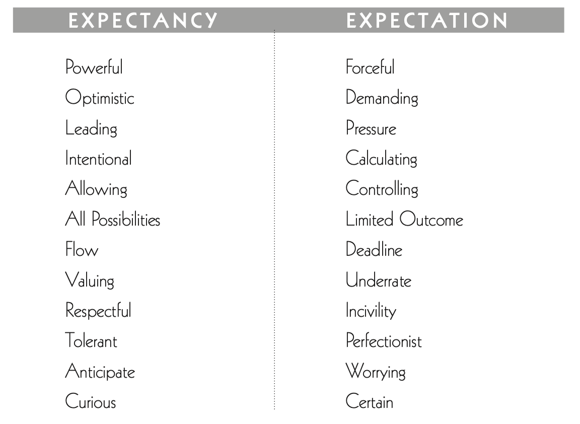 Here is a comparison of behaviors to help you recognize when you’re in expectancy vs. expectation. We suggest you refer back to this list when you need clarity.